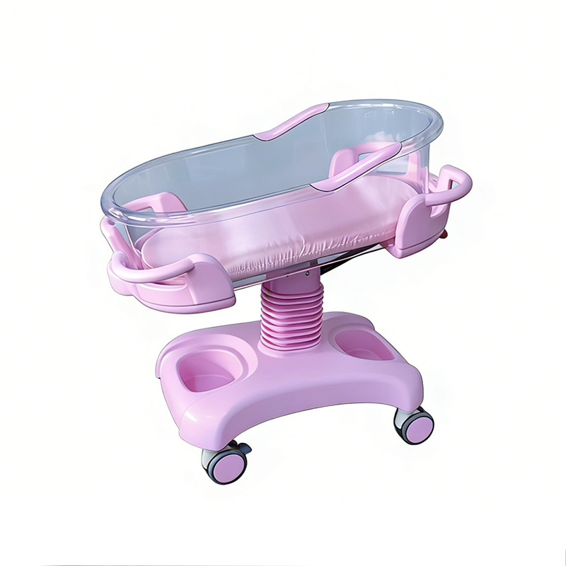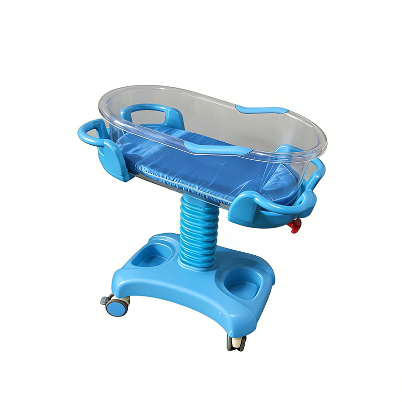 The ABS baby cot is designed to provide a safe and comfortable sleeping environment for newborns. It features a sturdy structure with a smooth and easy-to-clean surface, making it suitable for hospitals and maternity care settings. The pneumatic tilt adjustment allows the bed surface to be adjusted from 0° to 12°, helping improve infant comfort and care convenience.
